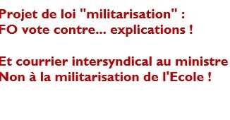 Projet de loi « militarisation » : FO vote contre… explications ! Et courrier au ministre intersyndical : Non à la militarisation de l’Ecole !